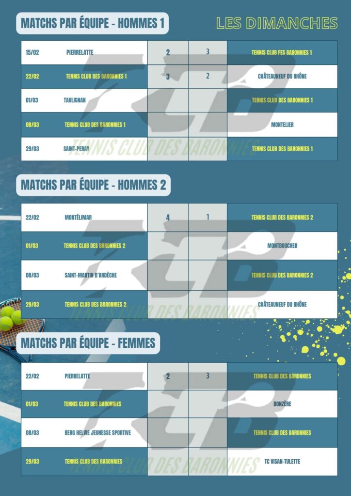 Finalement, l’équipe 2 « Hommes » était en déplacement à Montélimar où elle perd malheureusement 1-4. Merci pour le bon accueil à cette équipe ! La seule victoire est signée Regis qui perf à 30/5 après plus de 2h30 de match ! Bravo à lui !